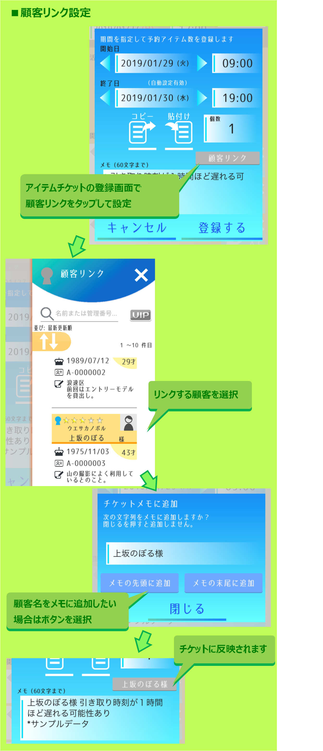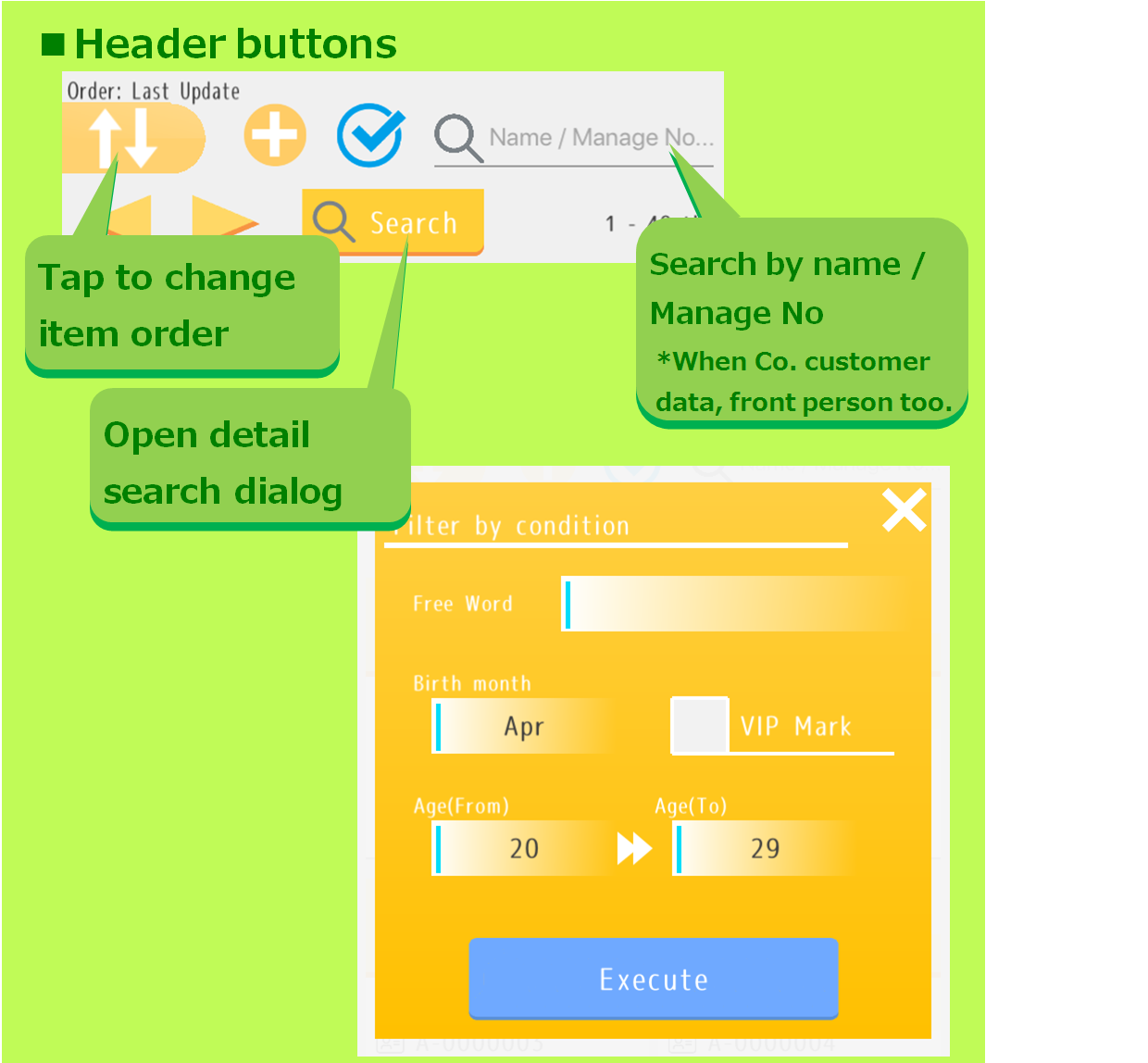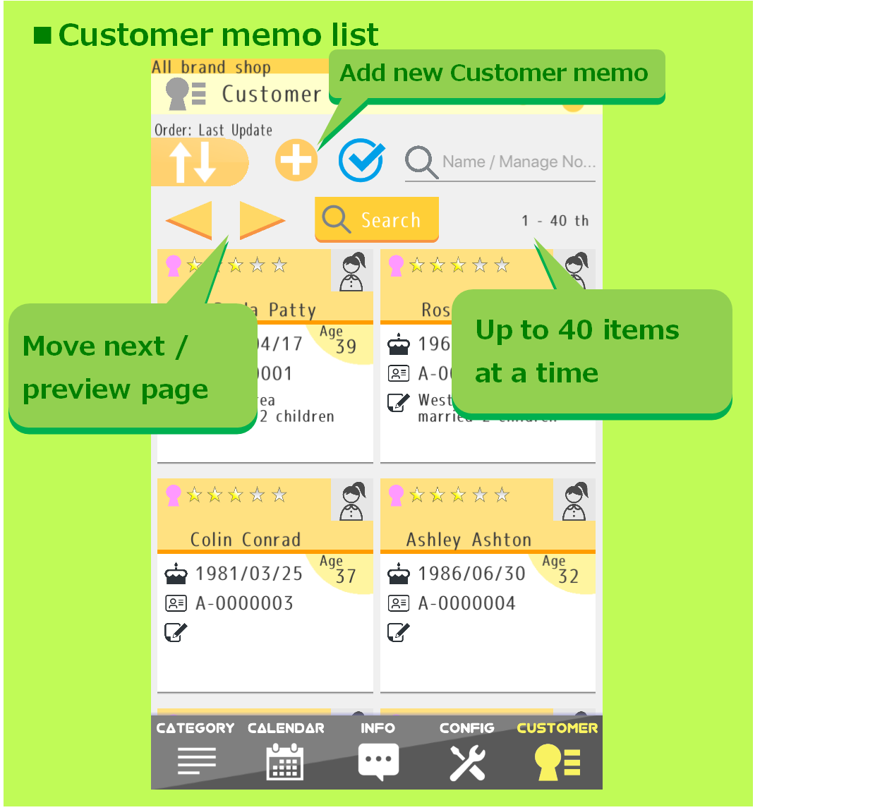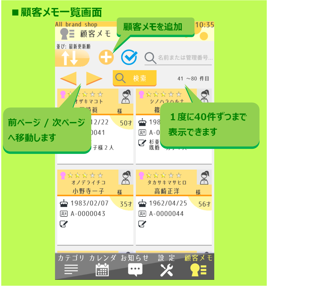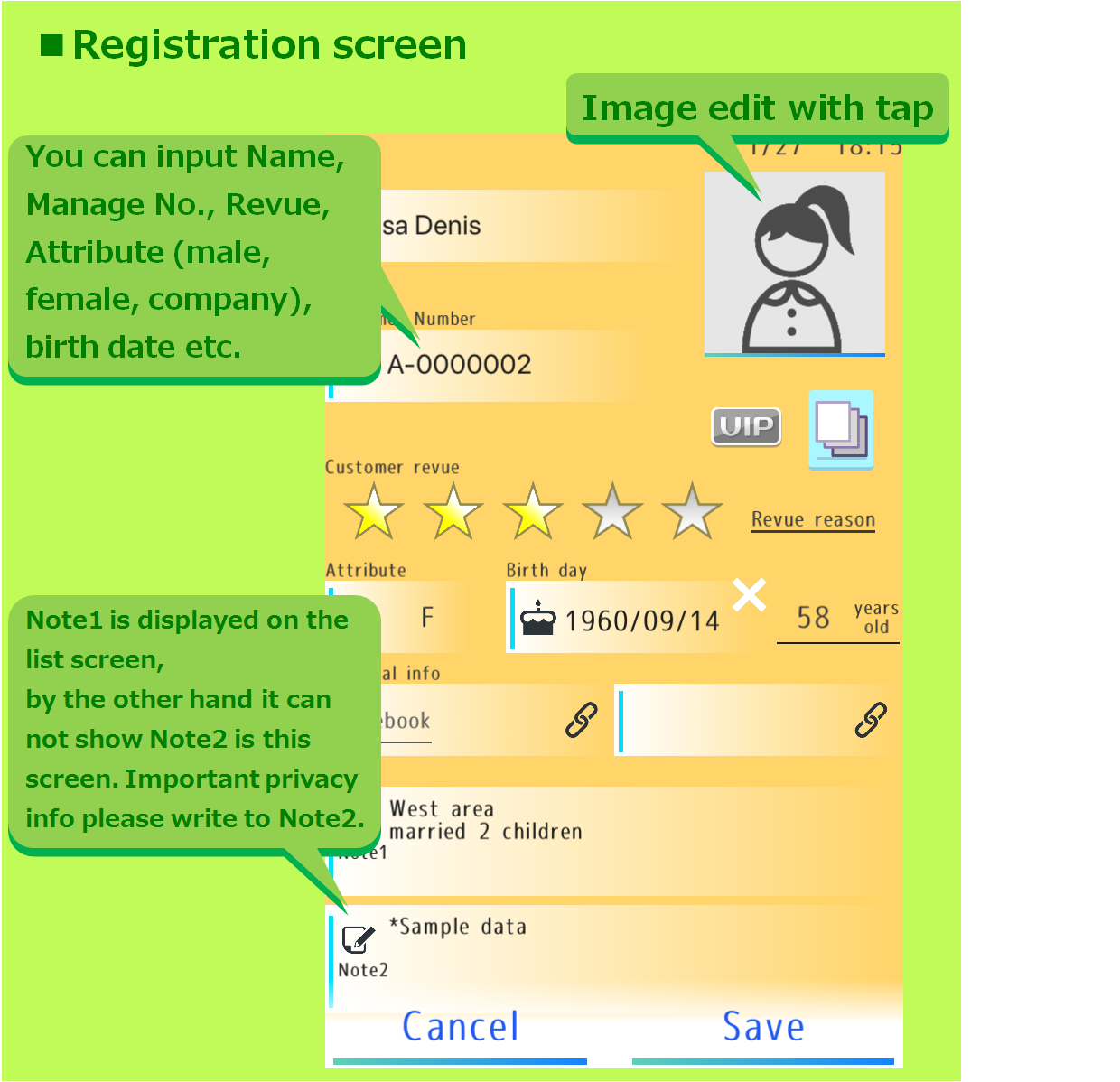 By using the data sharing function, customer notes can also be shared with staff members and members of the store. However, there may be some uneasiness about disclosing all contents related to personal information. On the other hand, users are unable to identify customers unless they know the name etc. Therefore, NOCOTE has a function to limit editing authority. Please use Note2 for important privacy information.